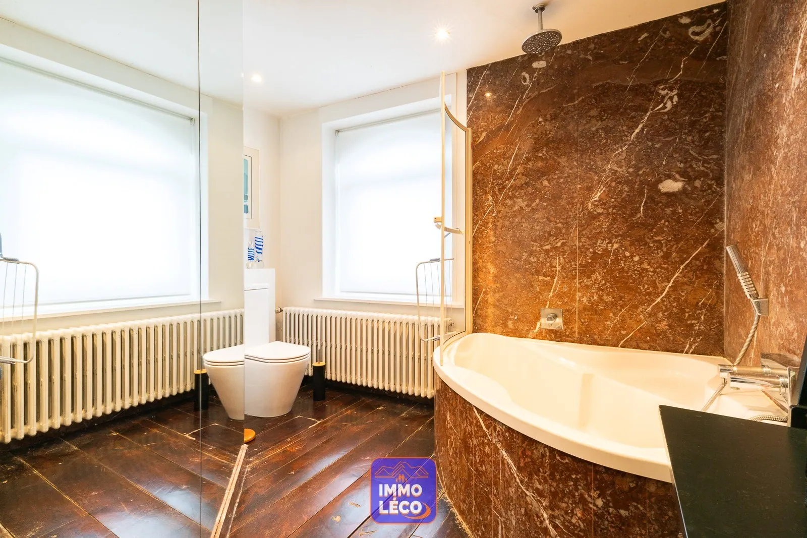évier, nombreux rangements, coin repas ), une belle chambre, salle de bains composée d'une baignoire en marbre, d'un lavabo et d'un WC.