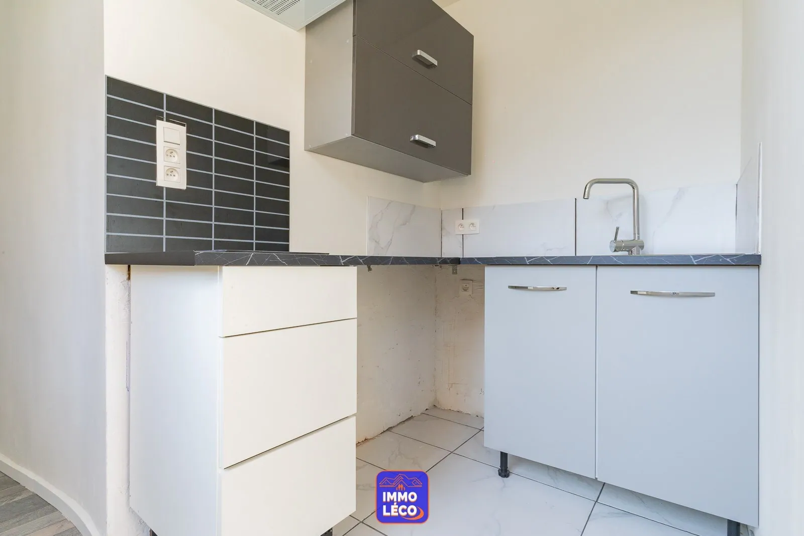 Au 1er étage : Séjour lumineux (salon, salle à manger), cuisine semi équipée ouverte, salle de bains composée d’une douche et d’un meuble lavabo, WC, une chambre.