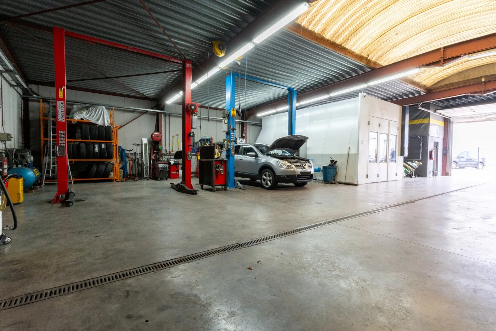 d'un espace de stockage, d'une cabine de peinture professionnelle et d'une toilette séparée. L'entrepôt est parfaitement adapté à une activité artisanale ou technique, avec la possibilité de reprendre l'ensemble du matériel selon le projet du futur acquéreur.