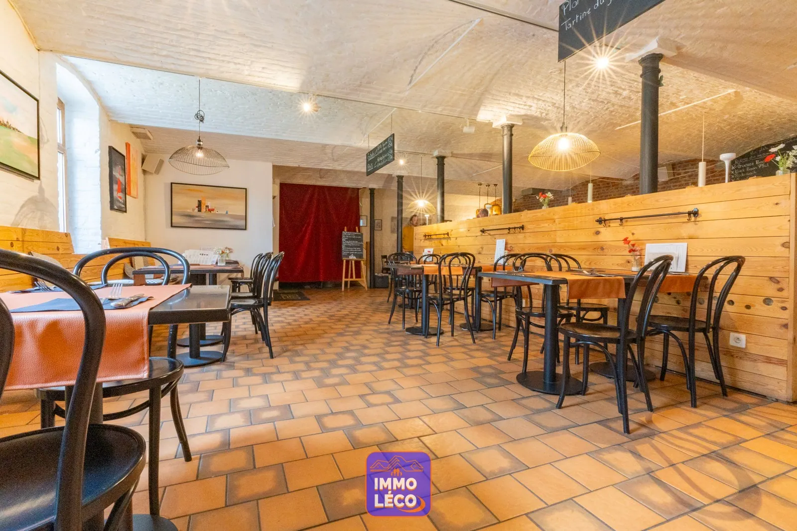 1) Restaurant de +/- 210m² en plein activité et composé d'une salle de réception au rez-de-chaussée avec grand bar, d'un espace cuisine professionnelle et de toilettes prévues pour la clientèle.