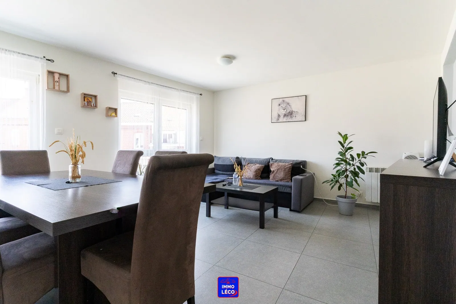 Logement 3 (deuxième étage) : Appartement avec lumineux séjour (salon, salle à manger), cuisine équipée ouverte (hotte, plaque de cuisson électrique, four, frigo, évier, rangements), une belle et grande chambre, salle de bains faïencée