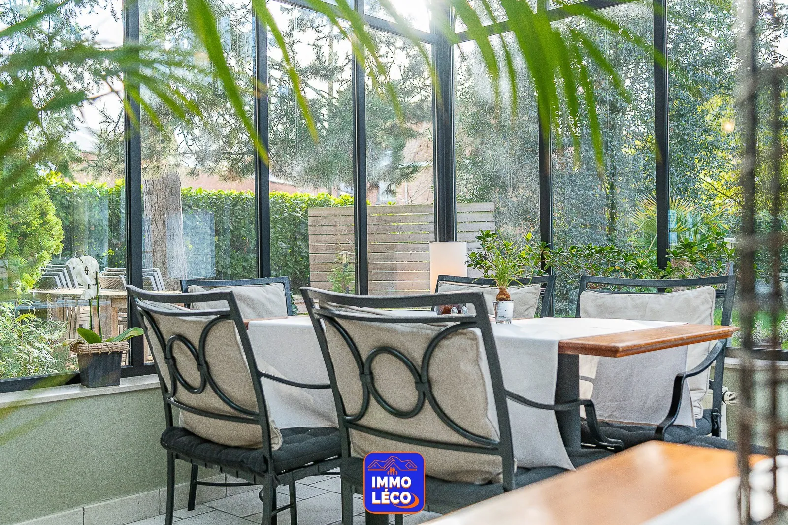 Une magnifique véranda considérée comme « orangerie » peut accueillir +/- 30 couverts.