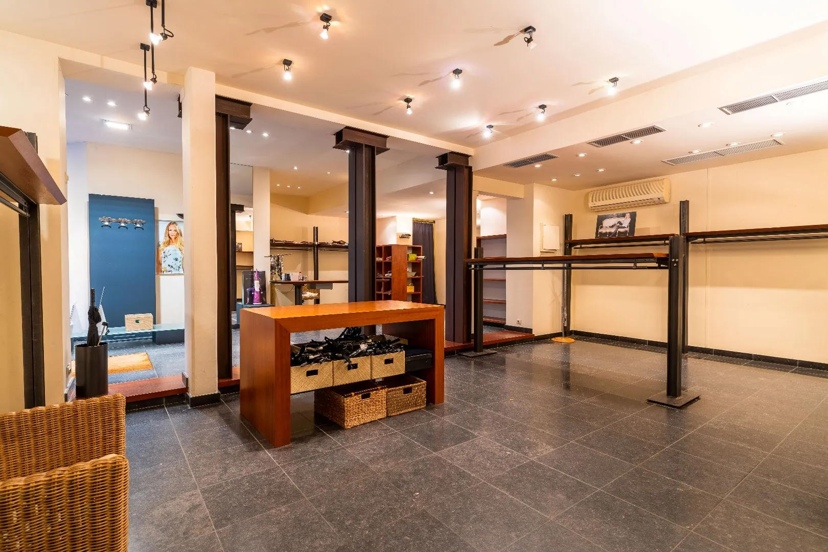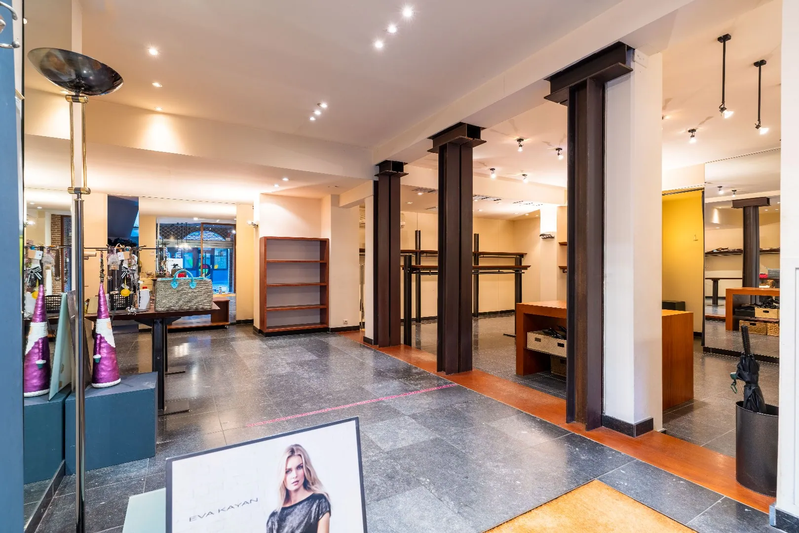 Anciennement exploitée en magasin de prêt à porter pour femmes depuis plus de 34ans par la même propriétaire, cette cellule développe une surface de +/- 115m2 et dessert un bel espace avec 2 grandes vitrines en façade, d’un coin comptoir, de 4 cabines d’essayages, de 2 réserves dont une avec kitchenette ainsi qu’une