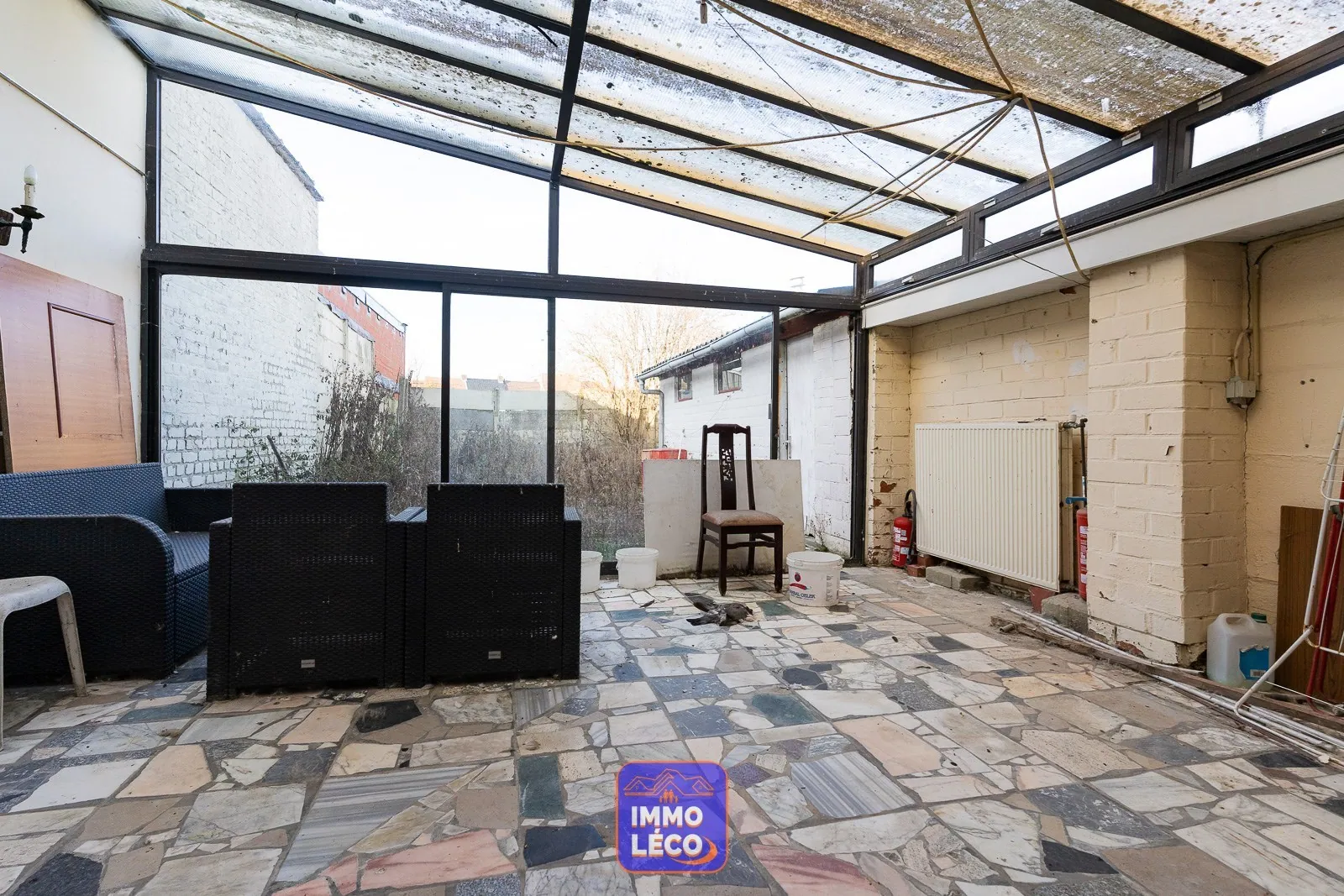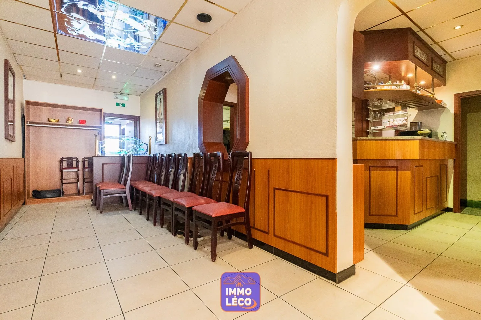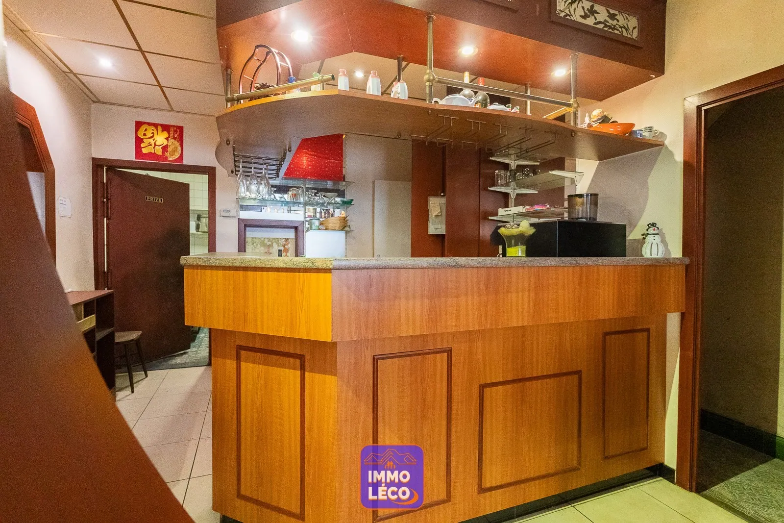 Au REZ : Surface commerciale de +/- 100m² anciennement exploitée en restaurant asiatique, composé de deux salles, d'un espace comptoir/bar, d'un espace prévu pour l'installation d'une cuisine professionnelle avec salle de stockage et installations sanitaires. A l'arrière, véranda, jardin, remise, cave.