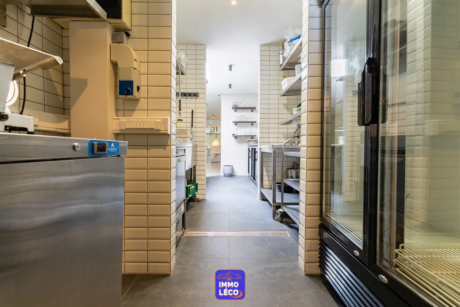 Composition : Première surface en façade avec grande vitrine équipée d'un large comptoir avec présentoirs vitrés, accès à une cave saine idéale pour le stockage, espace toilette clientèle avec un urinoir, WC et meuble lavabo. Seconde grande pièce à l'arrière avec tables et chaises, cuisine professionnelle avec coin bar, frigos, etc. ... TOUT EST INCLUS !