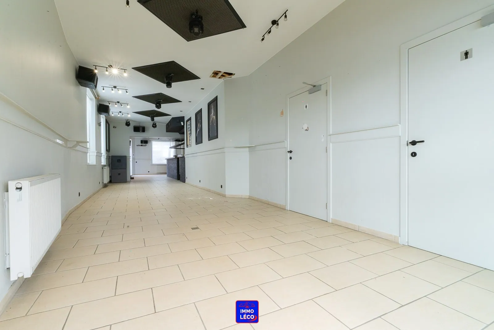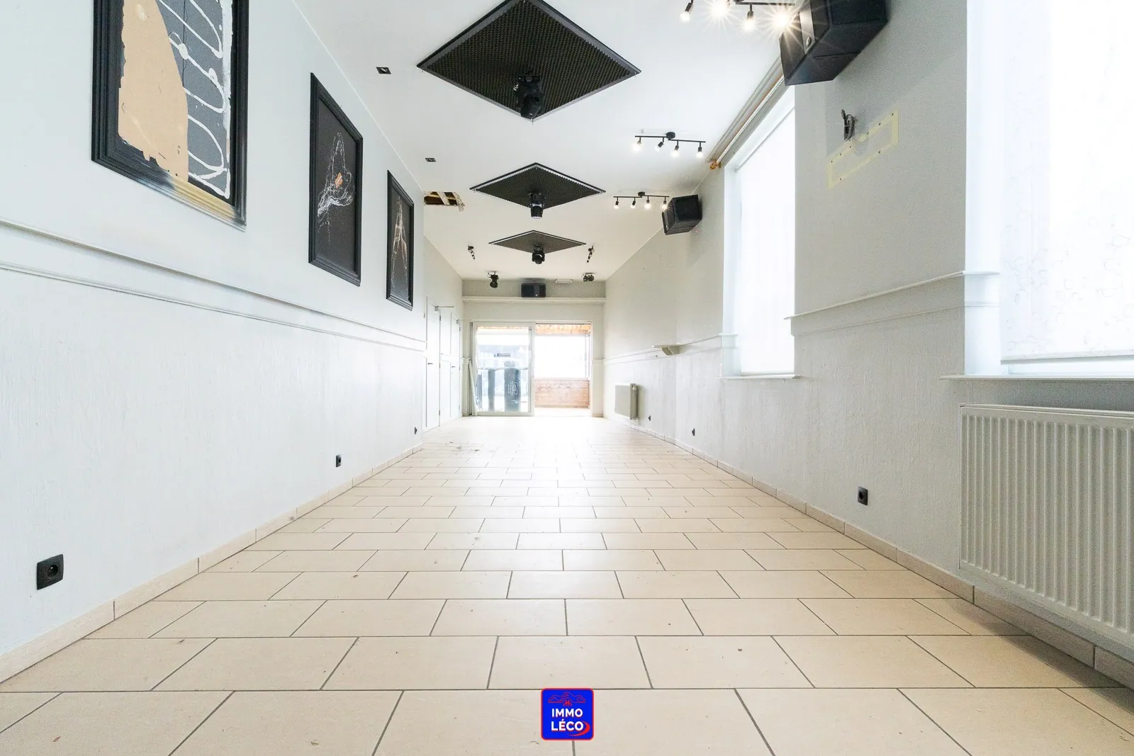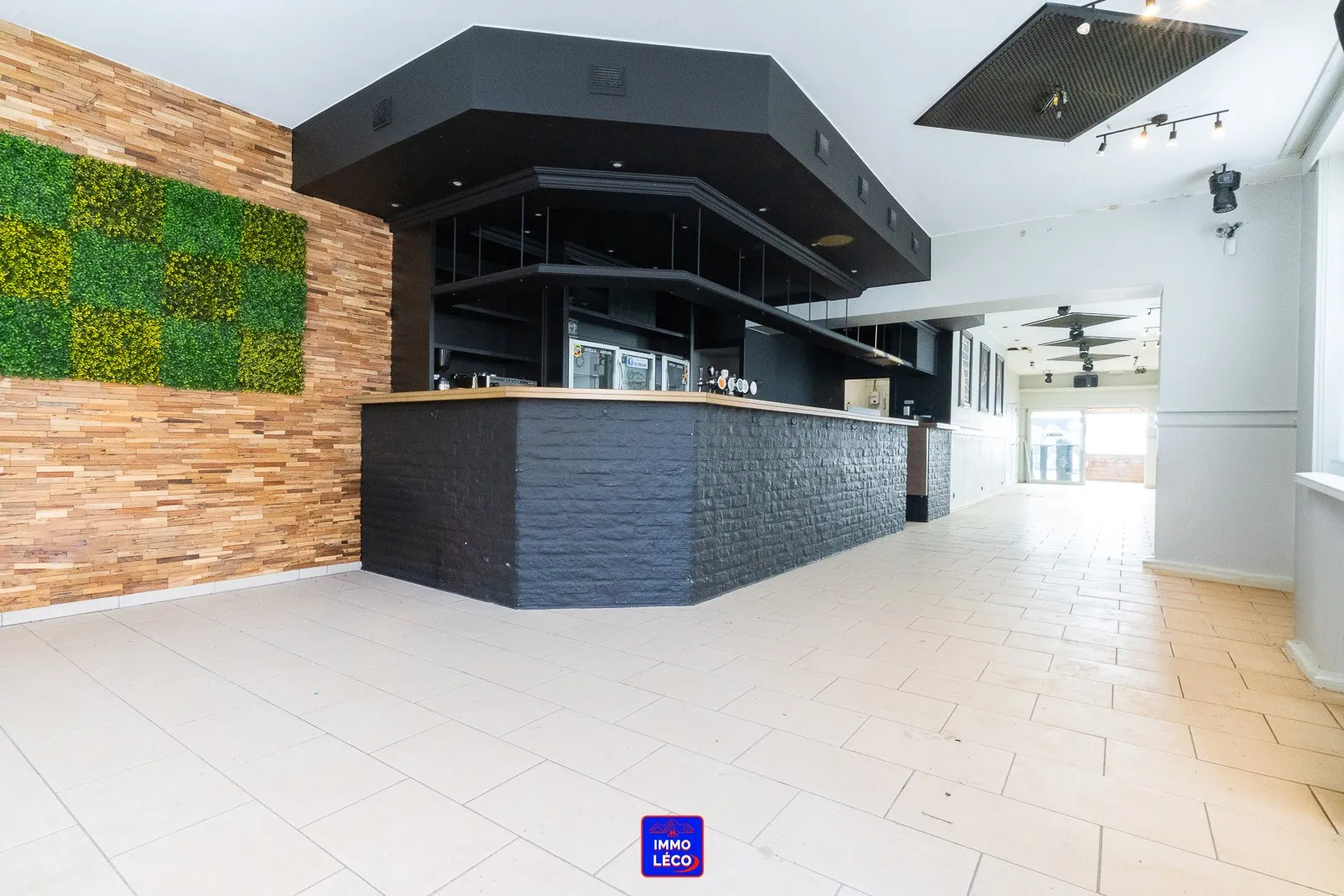 Au rez-de-chaussée : Surface commerciale de +/- 100m² actuellement aménagée en "Bistrot/Tea-Room" composée d'un comptoir/bar principal, d'un grand espace ouvert pour accueillir la clientèle, d'une arrière-cuisine, d'une chambre froide et de toilettes hommes/femmes séparées.
