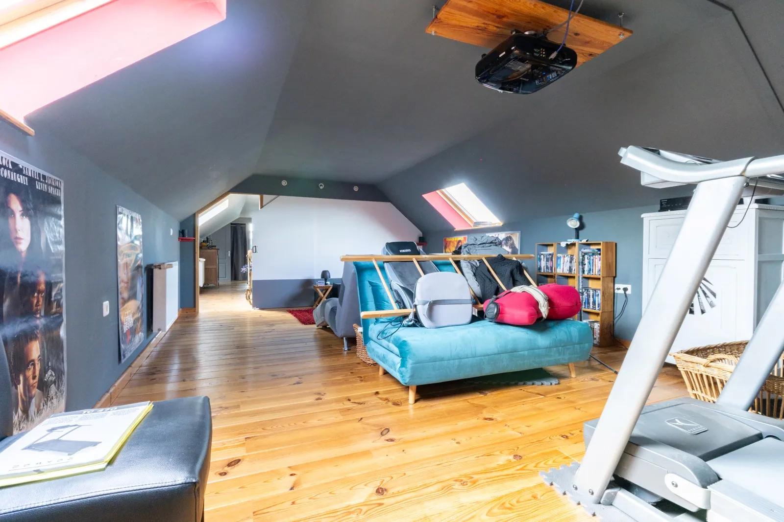 quatre chambres, une grande pièce actuellement aménagée en salle de cinéma, aménageable en fonction des besoins futurs.