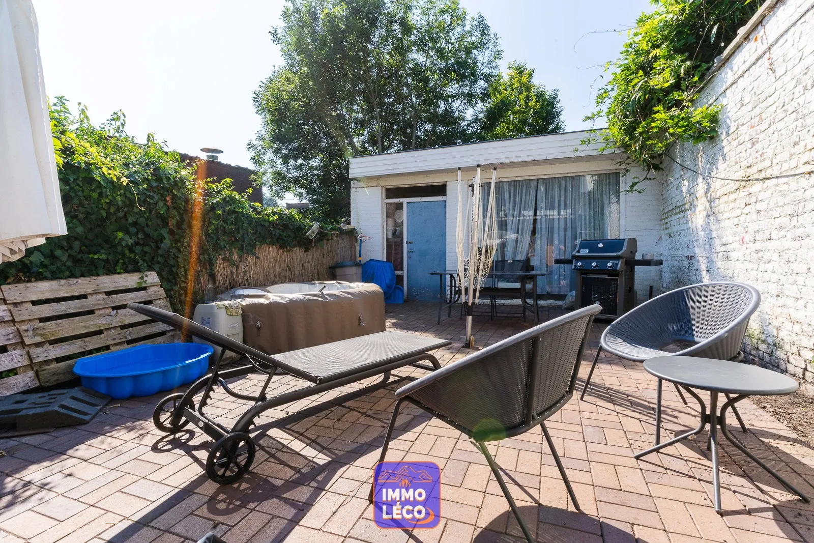 Extérieur : Grande cour/terrasse de +/- 55m² exposé "PLEIN SUD", grande remise attenante de +/- 45m².