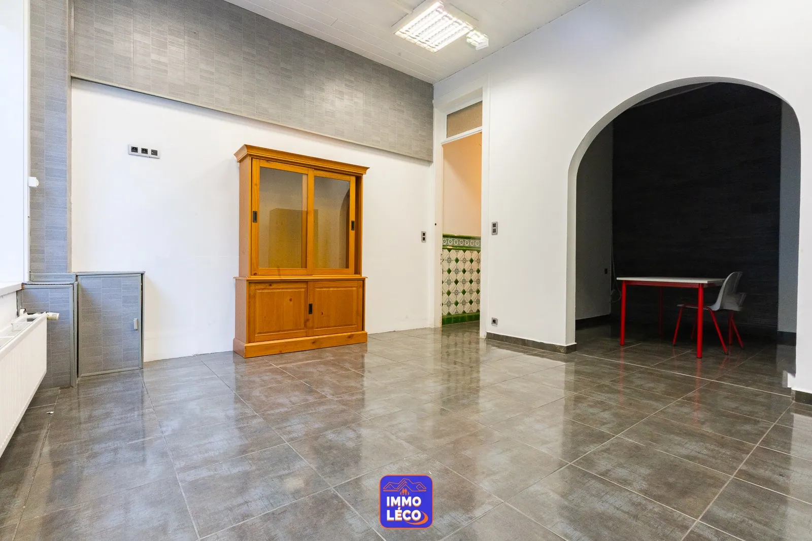 Première entrée en façade donnant accès à un espace commercial de +/- 30m² pouvant servir de commerce, bureau, profession libérale, etc... ou utiliser l'espace en une pièce privative.