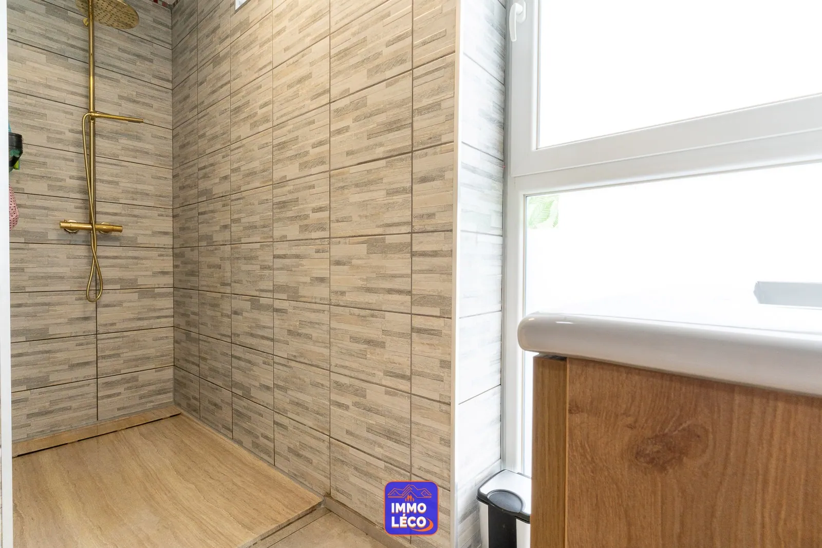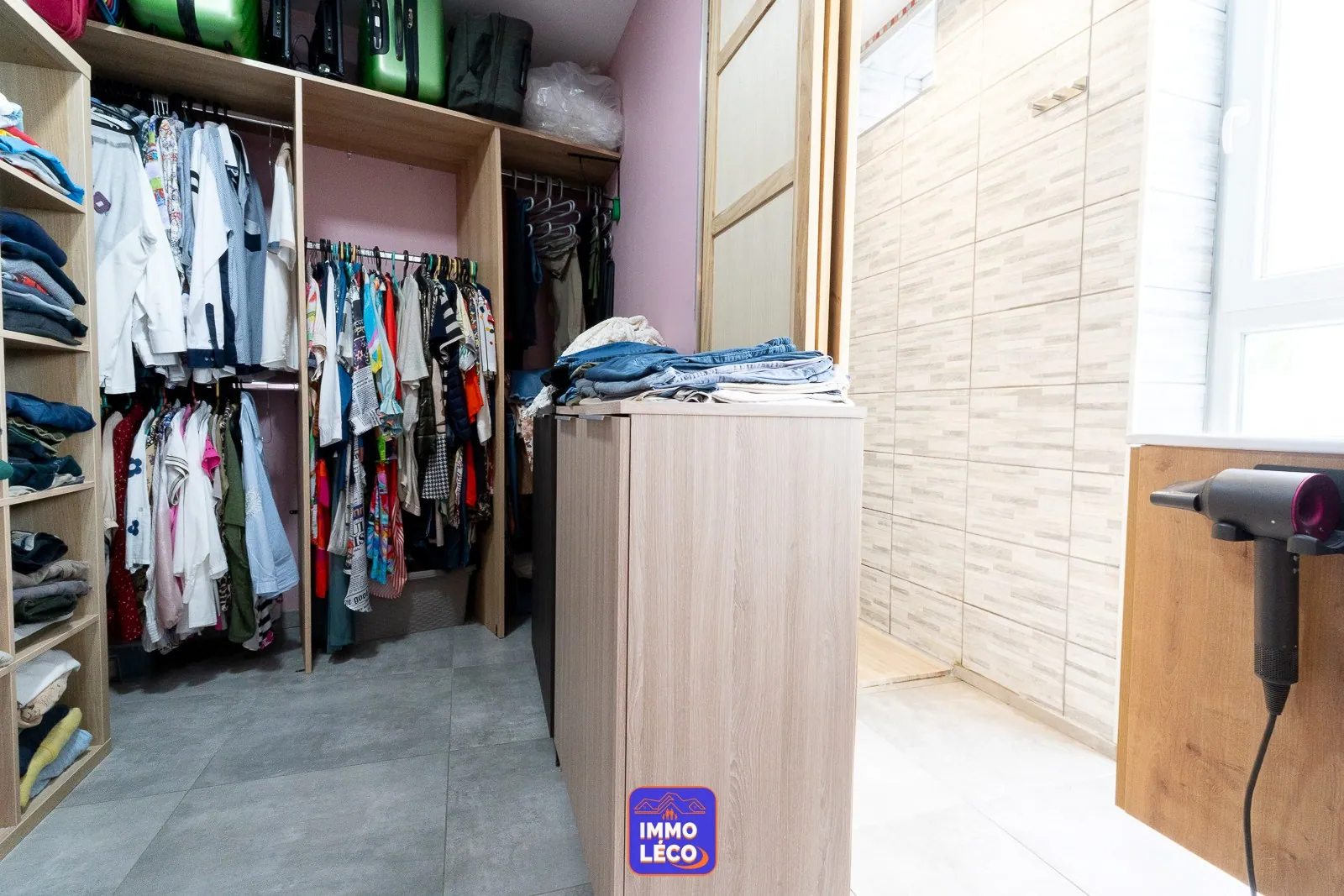 Au rez-de-chaussée : Hall d'entrée, vaste et lumineux séjour (salon, salle à manger), cuisine attenante équipée avec coin repas, une belle chambre avec salle de bains (douche, meuble lavabo) ainsi qu'un dressing séparé, grande buanderie avec coin laverie.
