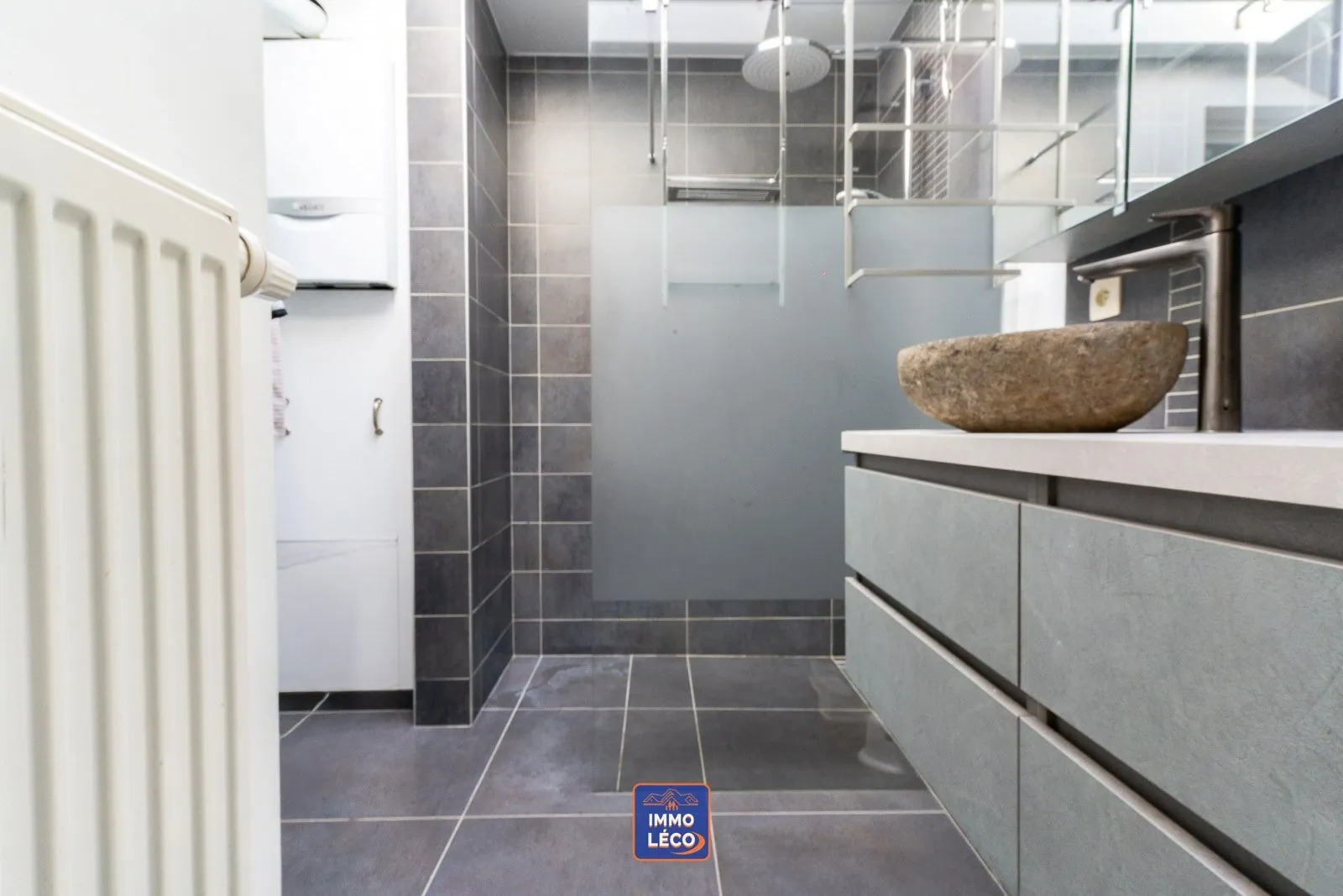 Extérieur : Parcelle totale de 1448m² ! Terrasse carrelée de +/- 35m², vaste jardin clôturé ayant une superbe exposition "PLEIN-SUD", chalet en bois, parking privatif de +/- 230m² !