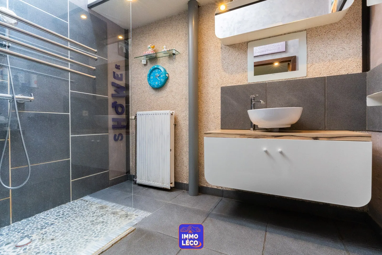 Immo Léco vous propose à la vente cette construction d'architecte 3 façades réalisée en 1998, rare à la vente, située dans le centre-ville de Mouscron, composée comme suit :