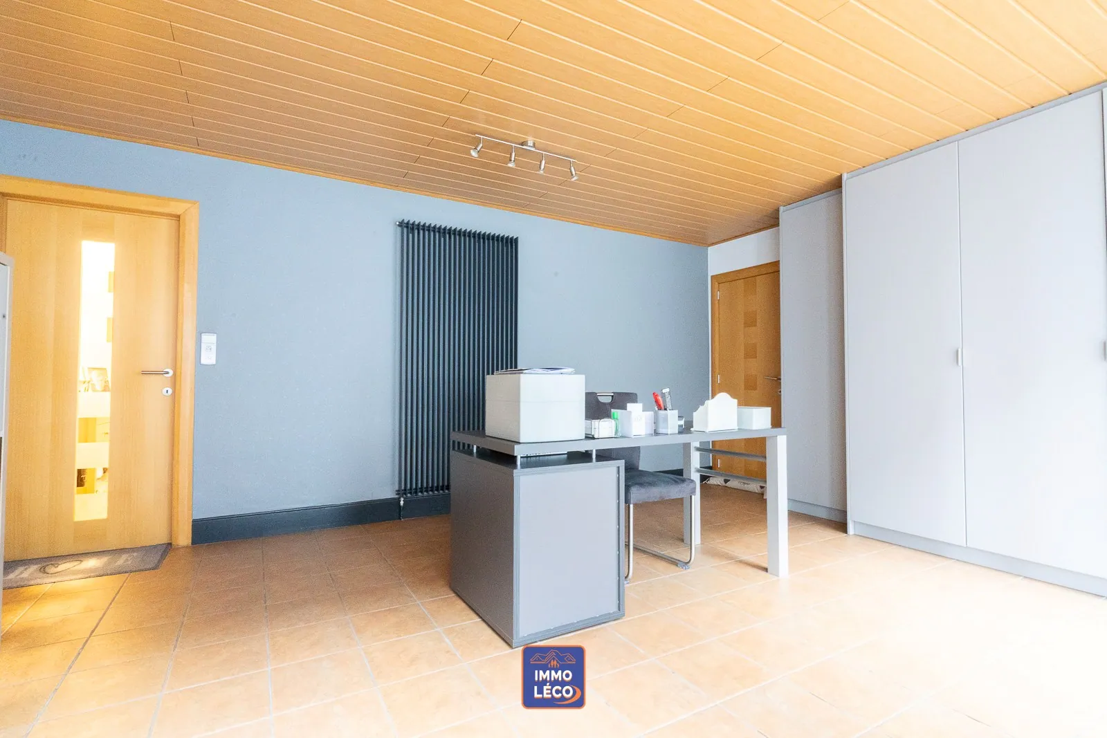 Dès l’entrée, vous découvrez un vaste hall d’environ 22 m², intégrant un espace bureau et un vestiaire sur mesure.