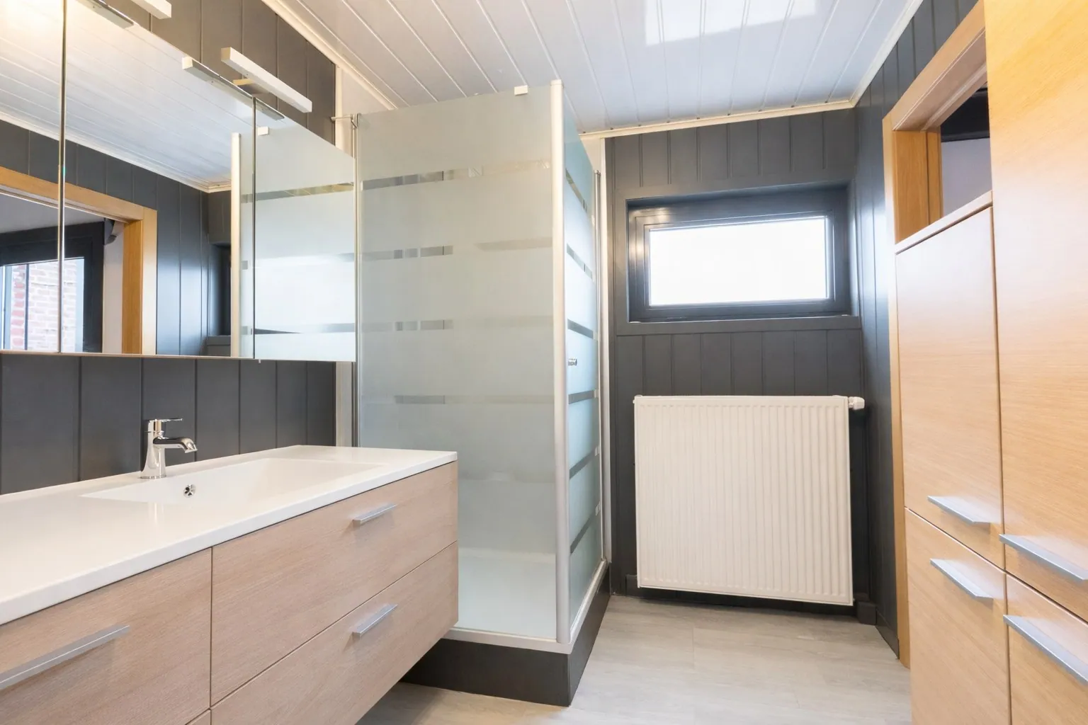 Toujours au rez-de-chaussée, une salle de bains complète comprenant :