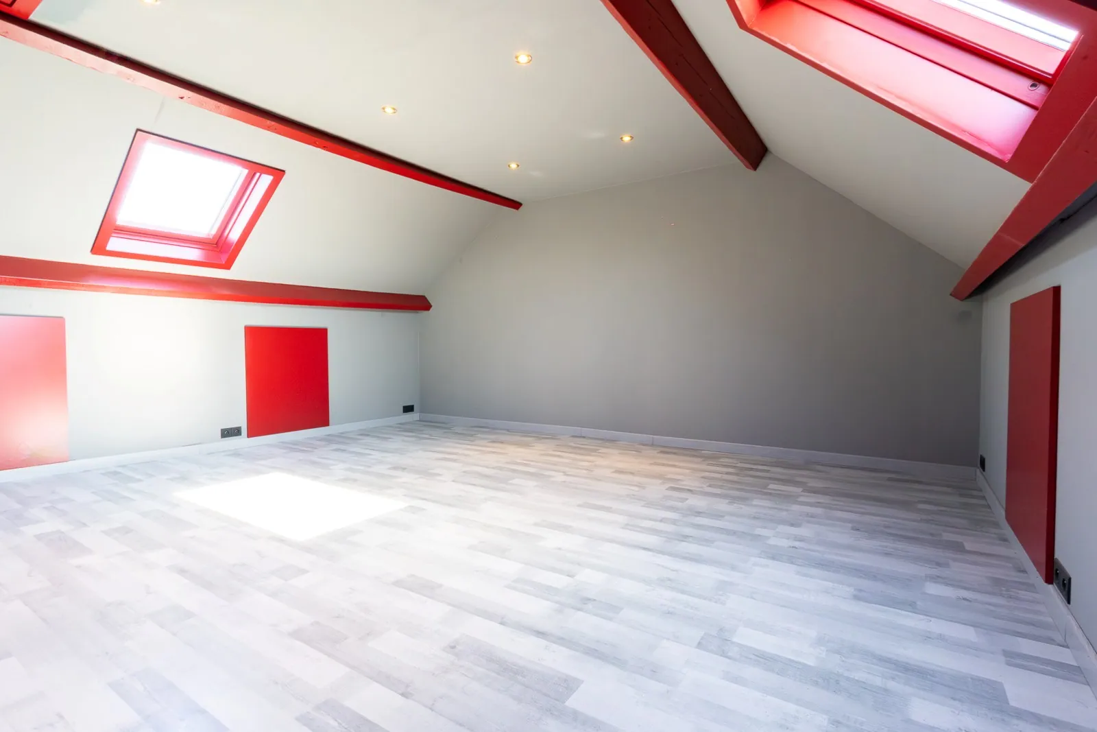 Au deuxième étage : Grenier aménagé en une quatrième grande chambre avec rangements dans les combles, grenier de stockage supplémentaire.