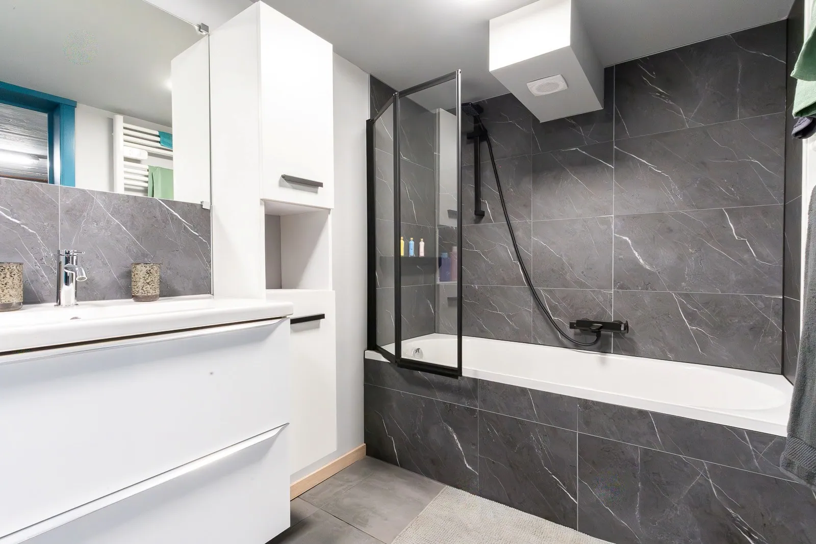 Au sous-sol : Maison entièrement excavée, composée d'une buanderie, d'une remise, d'une cave à vins, d'une secondes salle de bains fraîchement rénovée (baignoire/douche, meuble lavabo, WC, sèche serviette), et d'un accès direct à deux garages carrelés.