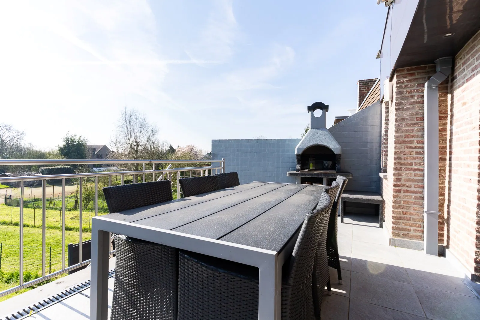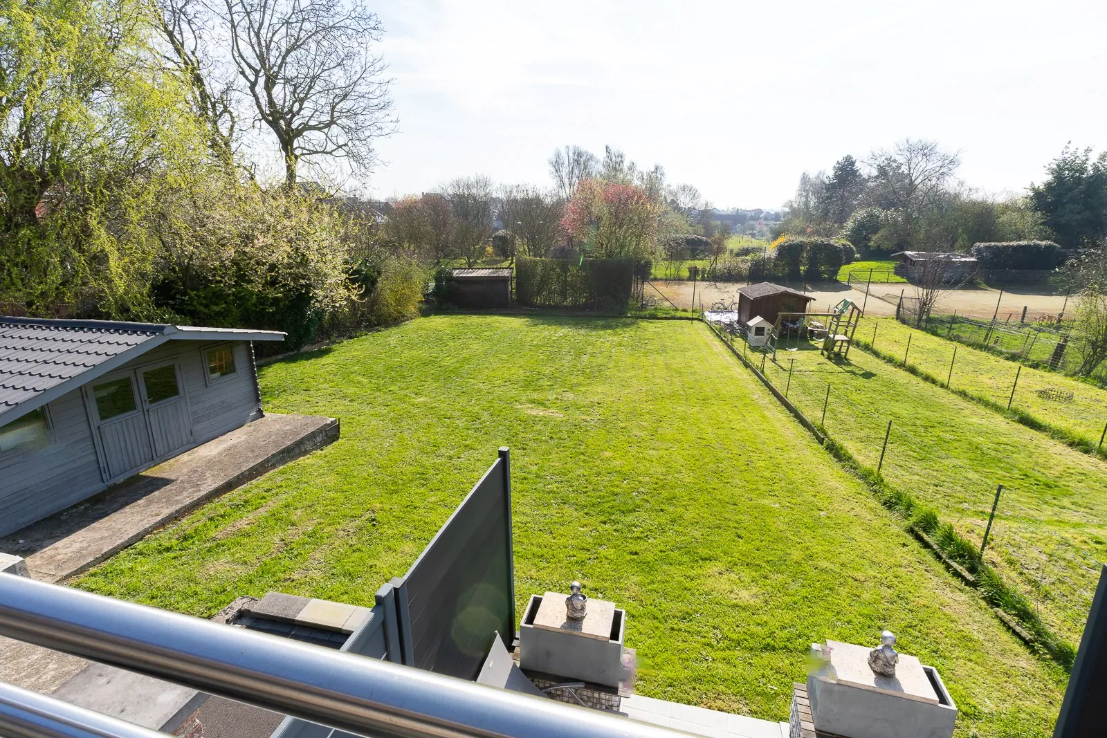 A l'arrière, belle terrasse carrelée surplombant un jardin clôturé ayant une superbe exposition "SUD-EST", grand chalet en bois.