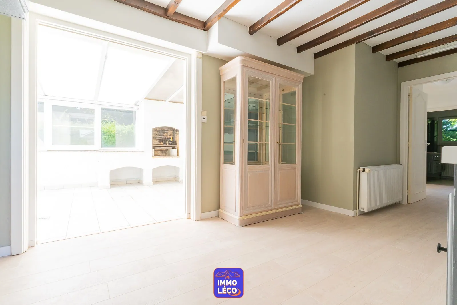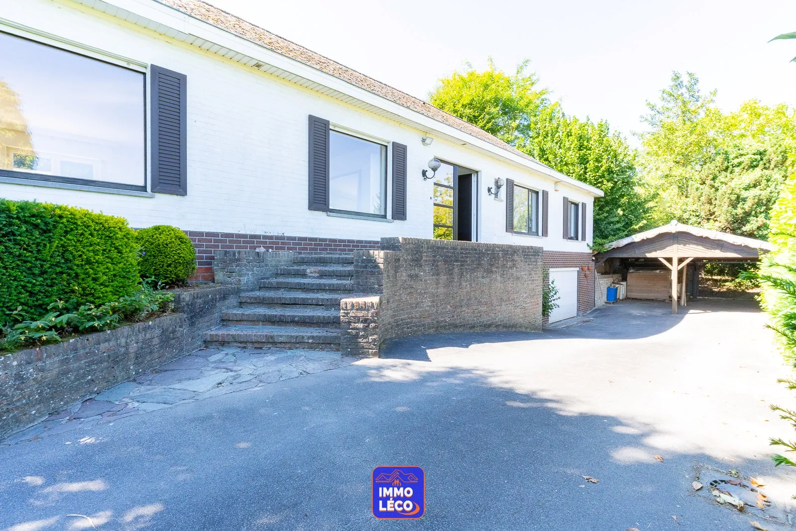 Immo Léco vous propose à la vente cette superbe propriété "Plain-Pied" idéalement située, dans une rue particulièrement calme, en face des champs, érigée sur une parcelle totale de 1311m² ! Composition :