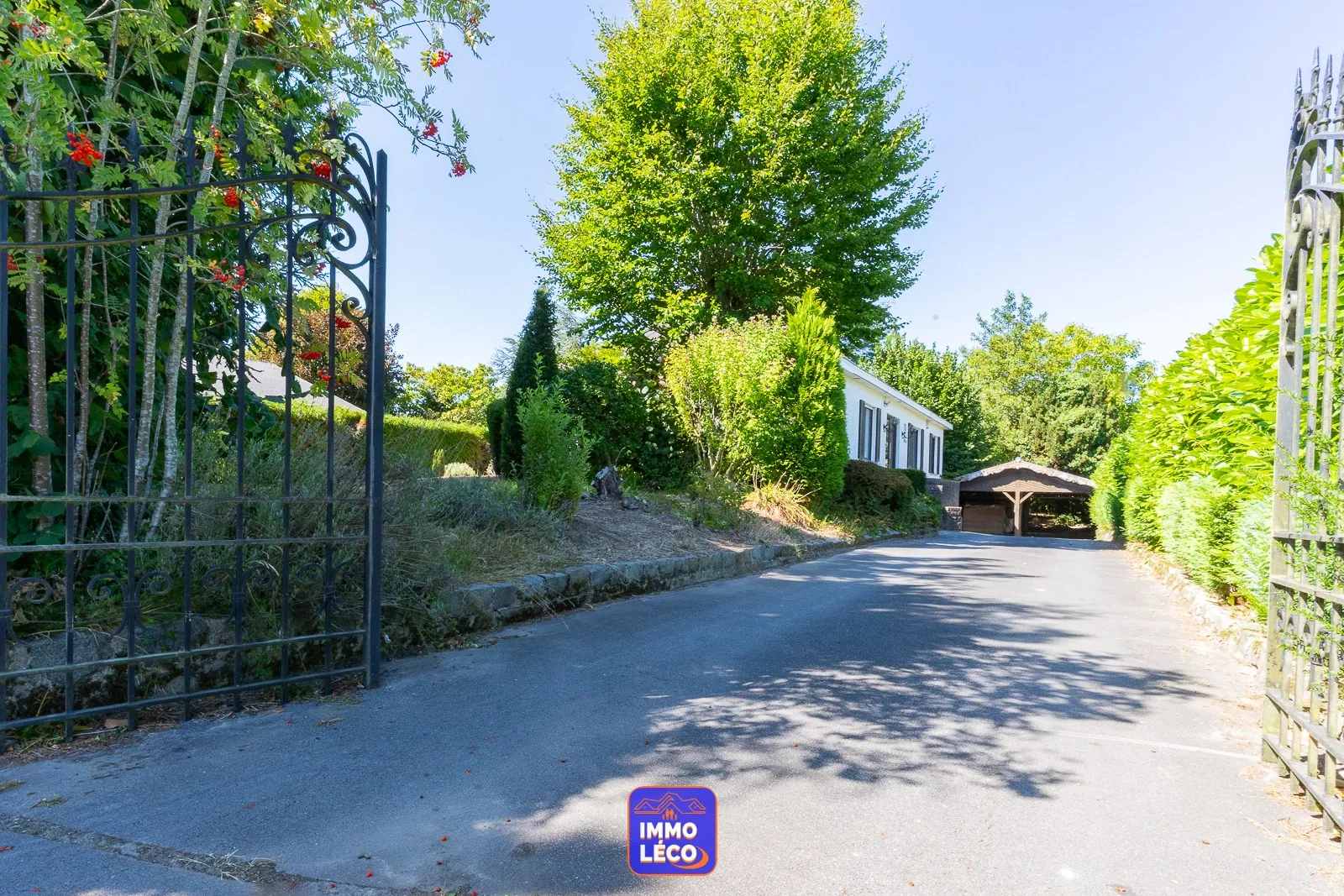 Extérieur : Parcelle totale de 1311m² ! En façade, grande allée privative idéale pour du stationnement (sécurisée par un portail), carport en bois pour deux voitures. A l'arrière, terrasse avec store banne, jardin clôturé avec chalet en bois.