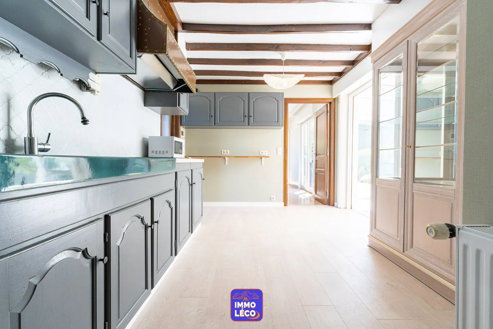 et spacieux séjour (salon, salle à manger), cuisine attenante semi équipée, véranda carrelée. Hall de nuit, trois belles chambres, une salle de bains composée d'une baignoire/douche, d'un meuble lavabo et d'un second WC.