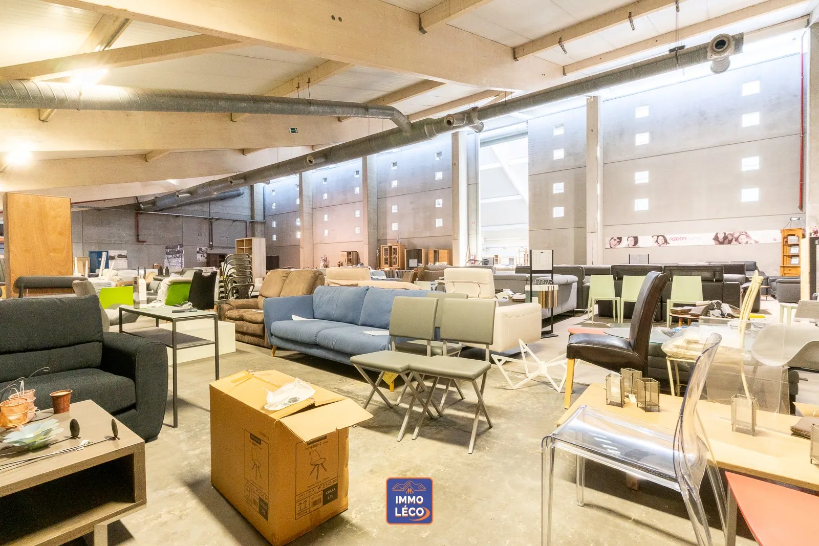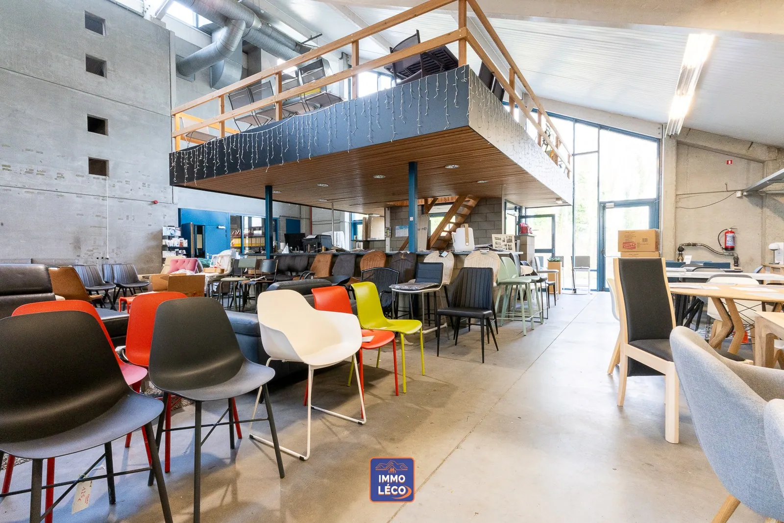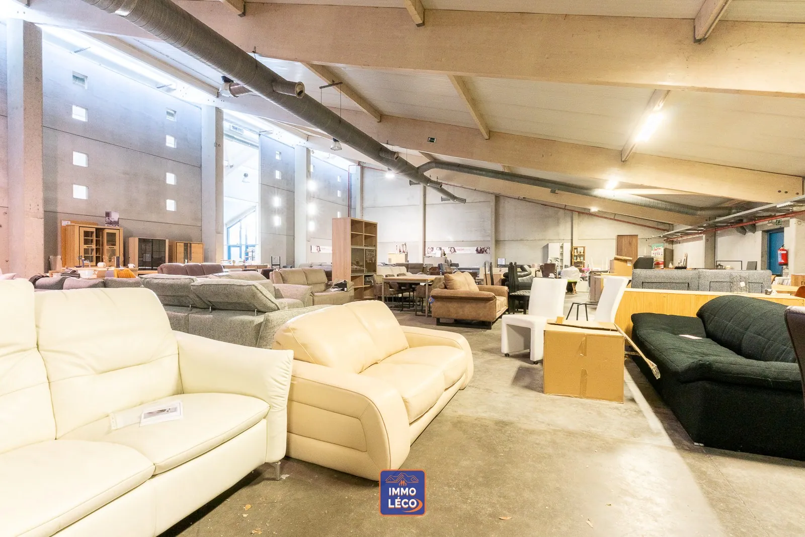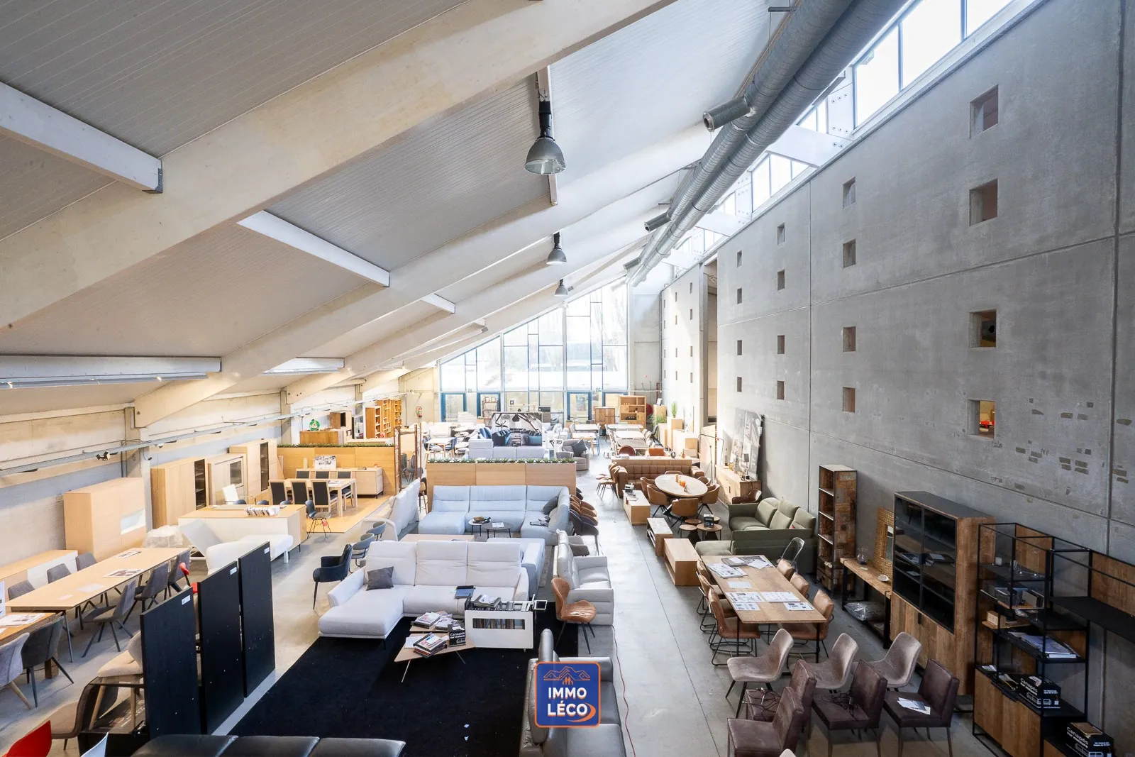 Ce bâtiment polyvalent développe une surface totale de 1.376 m² et associe un entrepôt fonctionnel à un showroom. L’ensemble bénéficie d’une excellente
