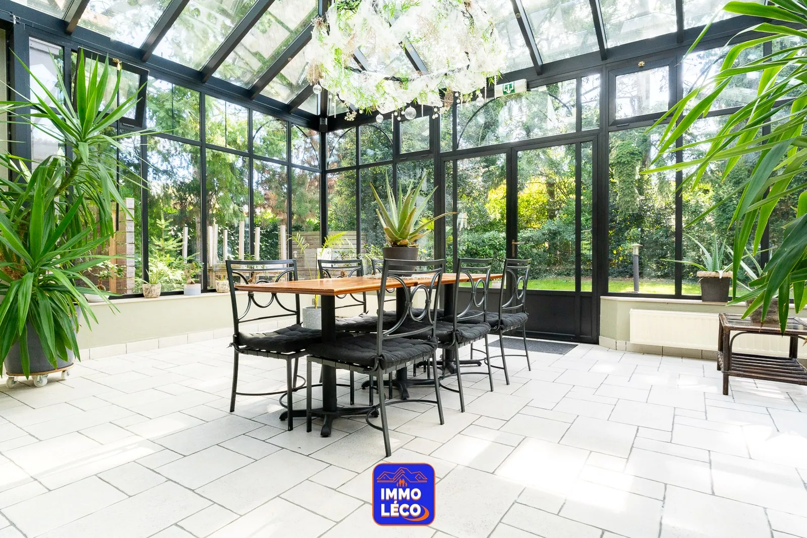 Véranda lumineuse, entièrement carrelée, donnant un accès direct au jardin,