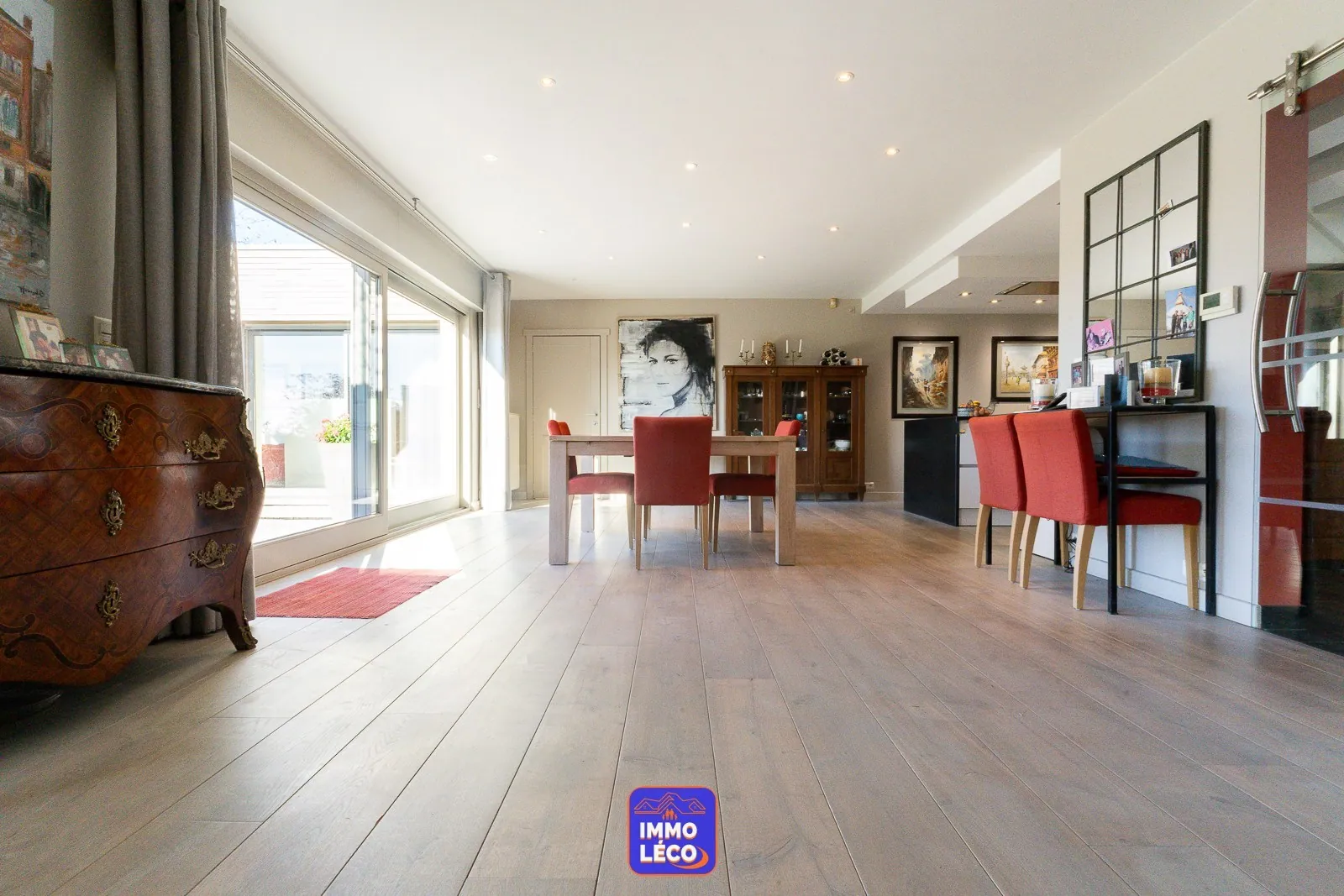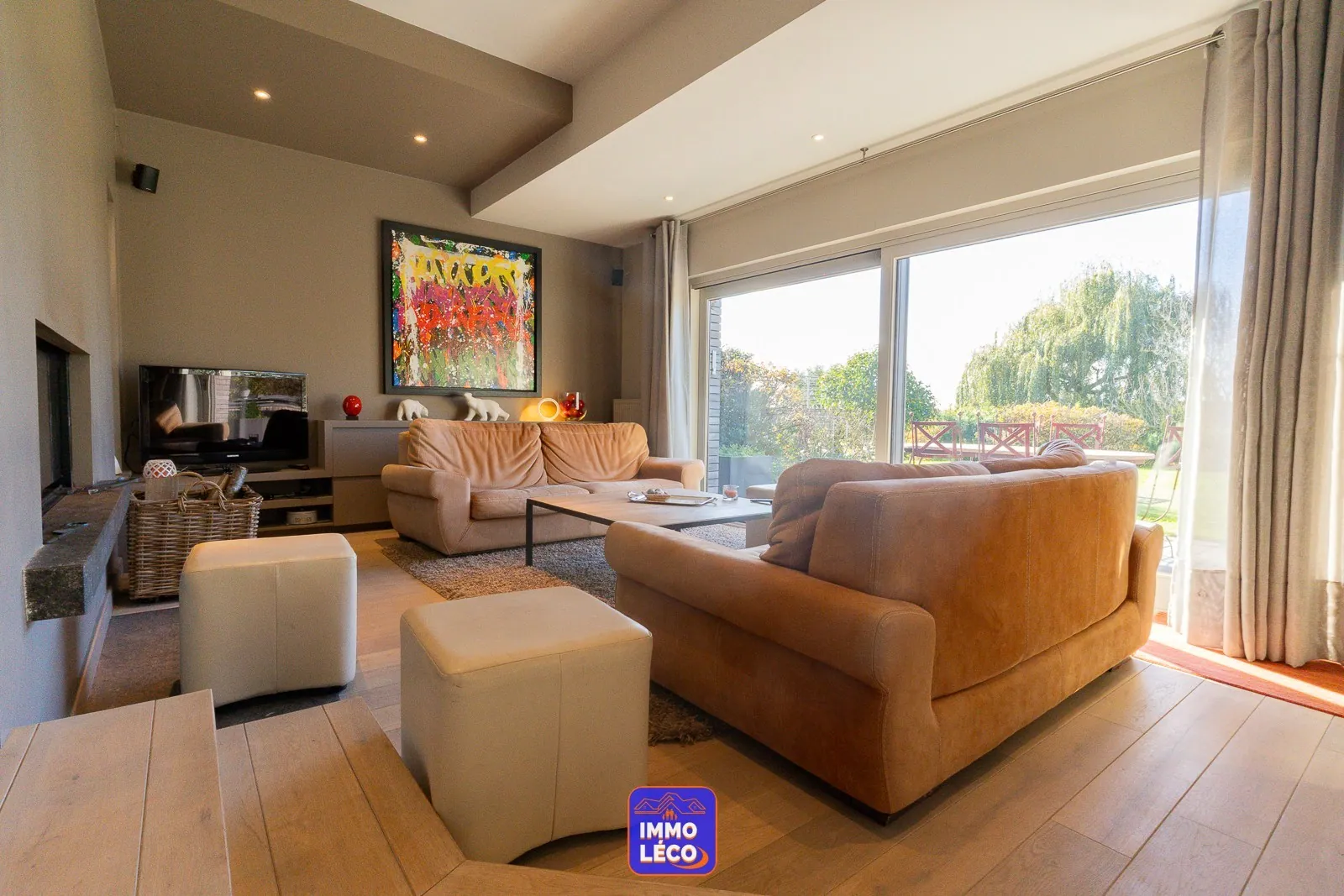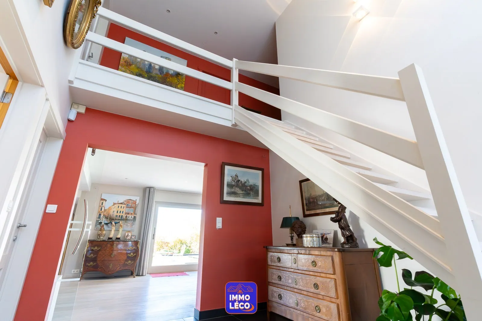 Dès l’entrée, vous serez séduit par le spacieux hall d'entrée avec escalier apparent, menant vers une pièce de vie lumineuse avec parquet en chêne, éclairage indirect