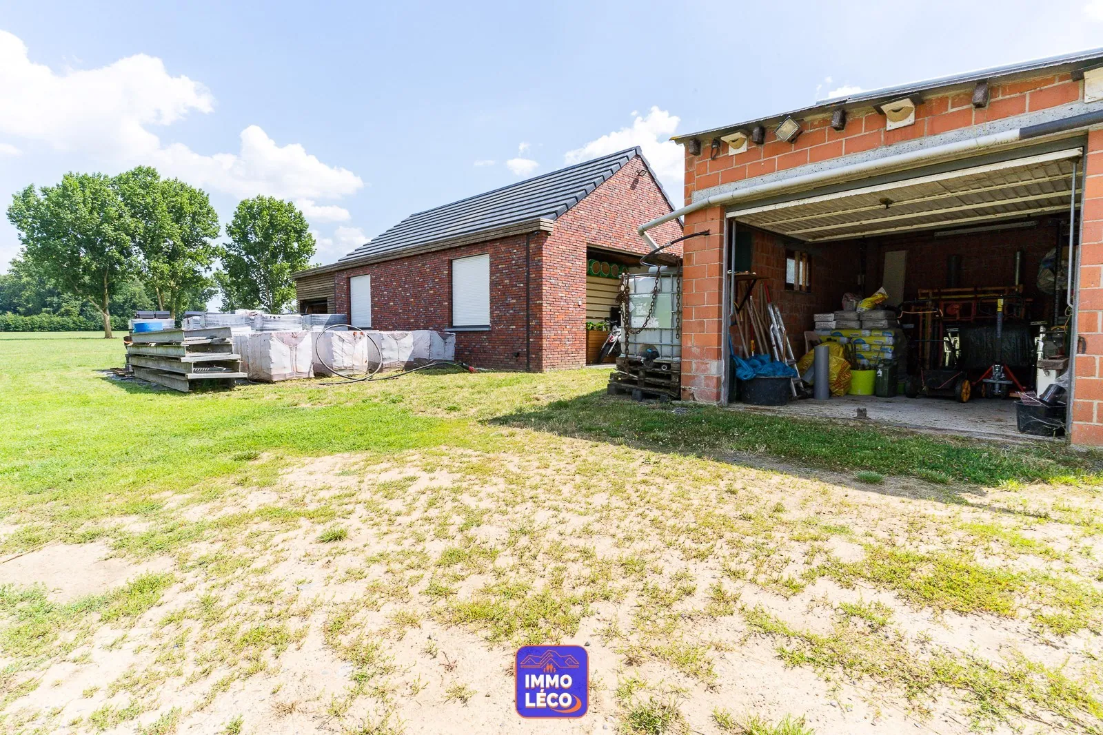 Le terrain, sur une surface totale de 838m², dessert un jardin ainsi qu'un atelier/entrepôt attenant avec deux portes sectionnelles motorisées.