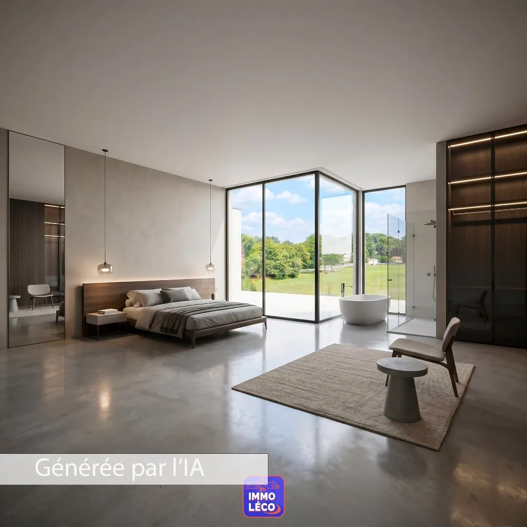 Le premier étage prévoit trois belles et grandes chambres dont une suite parentale avec dressing sur mesure, ainsi qu'une salle de bains.
