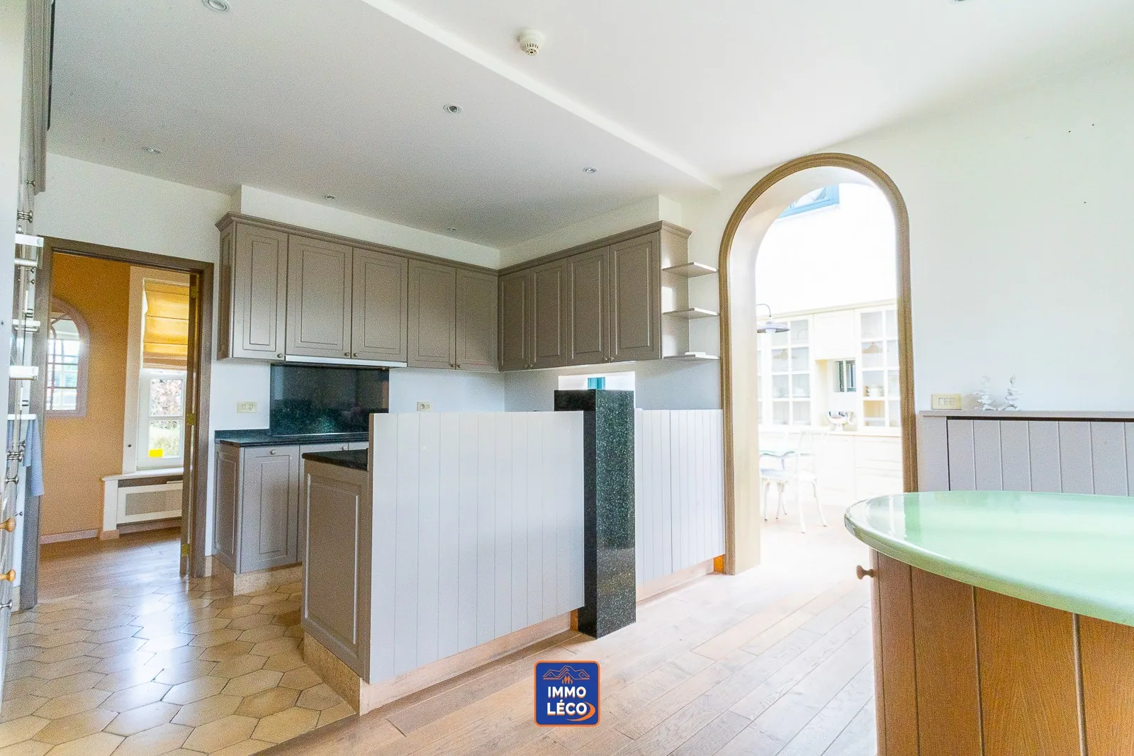 Dès l’entrée, un hall majestueux vous accueille et dessert un vaste séjour avec salle à manger attenante. La salle à manger communique harmonieusement avec la cuisine ainsi qu’avec une splendide pièce sous verrière baignée de lumière.